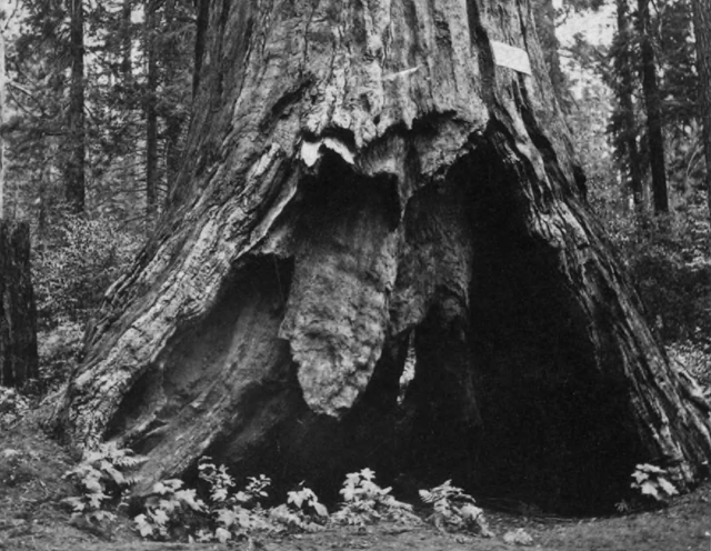 This particular tree was selected as it already had large forest fire scars. However, this enabled the tree to compete for attention with the Yosemite’s Wawona Tree and to attract more tourists to the park.