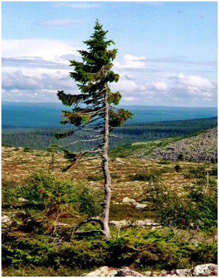 Old Tjikko is a 9,550-year-old Norway spruce, located on Fulufjället Mountain of Dalarna province in Sweden. Old Tjikko originally gained fame as the “world’s oldest tree.” Old Tjikko is, however, a clonal tree that has regenerated new trunks, branches and roots over millennia rather than an individual tree of great age. Old Tjikko is recognized as the oldest living Picea abies and the third oldest known clonal tree.