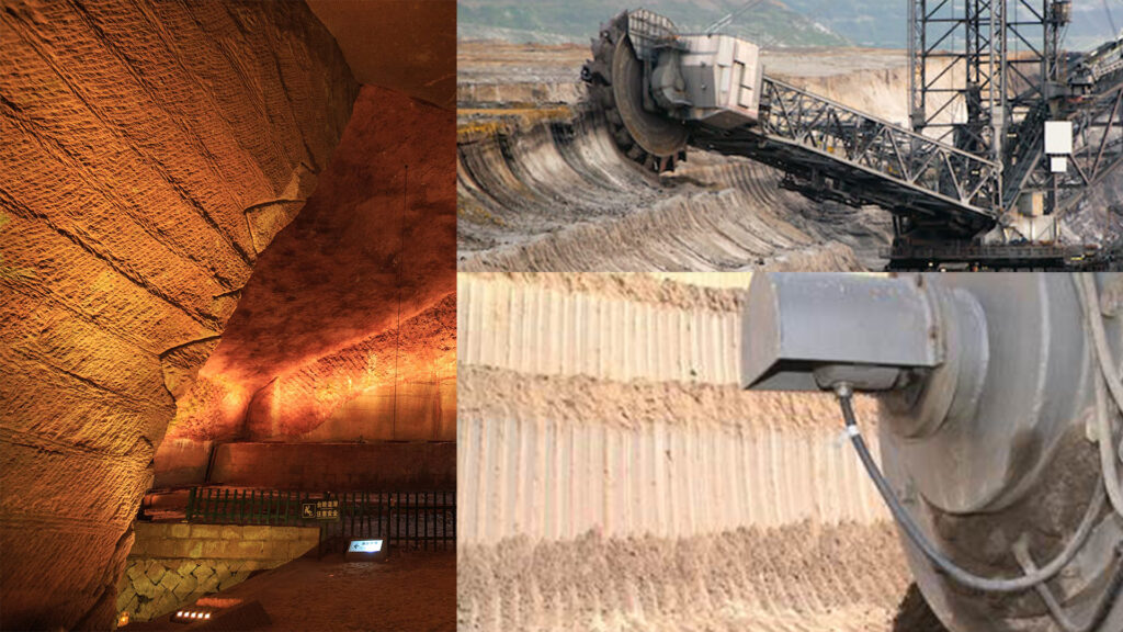 Modern-day high-tech machines dig away stone and grind down the walls and ceilings in mines and quarries.