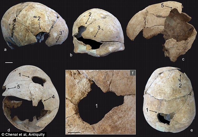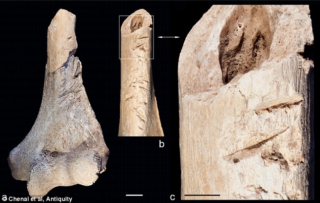 Scattered hand bones on the bottom layer suggest hands from severed limbs were chopped into pieces. Study author Fanny Chenal of Inrap told Gizmodo: ‘For a long time, Neolithic societies were considered relatively egalitarian and peaceful.