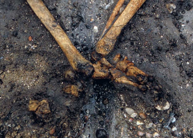 The man in the grave looks to have been executed, hung, and bound before being laid in the grave. Meanwhile, the woman was weighed down with large stones.