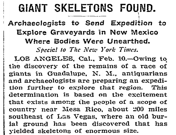 Giant “Skeletons of Enormous Size” Discovered In New Mexico – New York Times Article From 1902