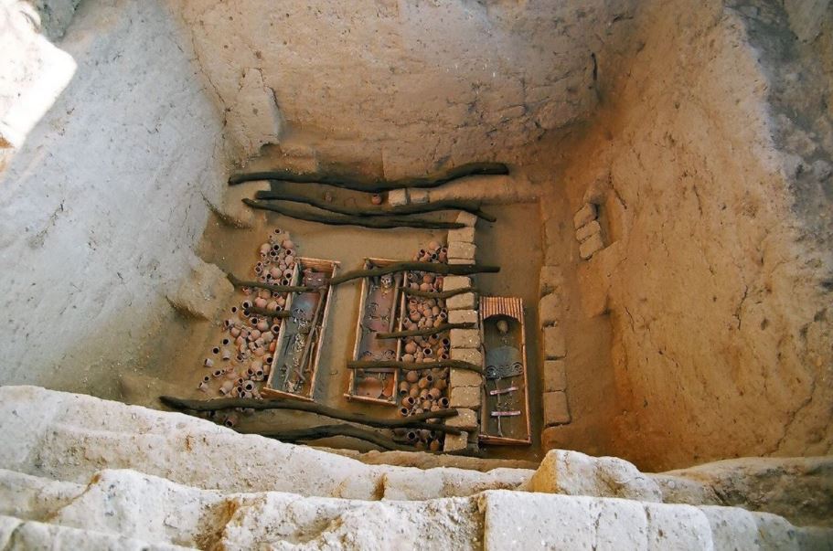 Before discovering the famous Moche leader, archaeologists were met by a Guardian – the remains of a man with a copper helmet and a shield. He was buried in a seated position and his feet amputated to prevent him from leaving his seat. At the time, the researchers had no idea of the opulent riches that lay beyond the Guardian.