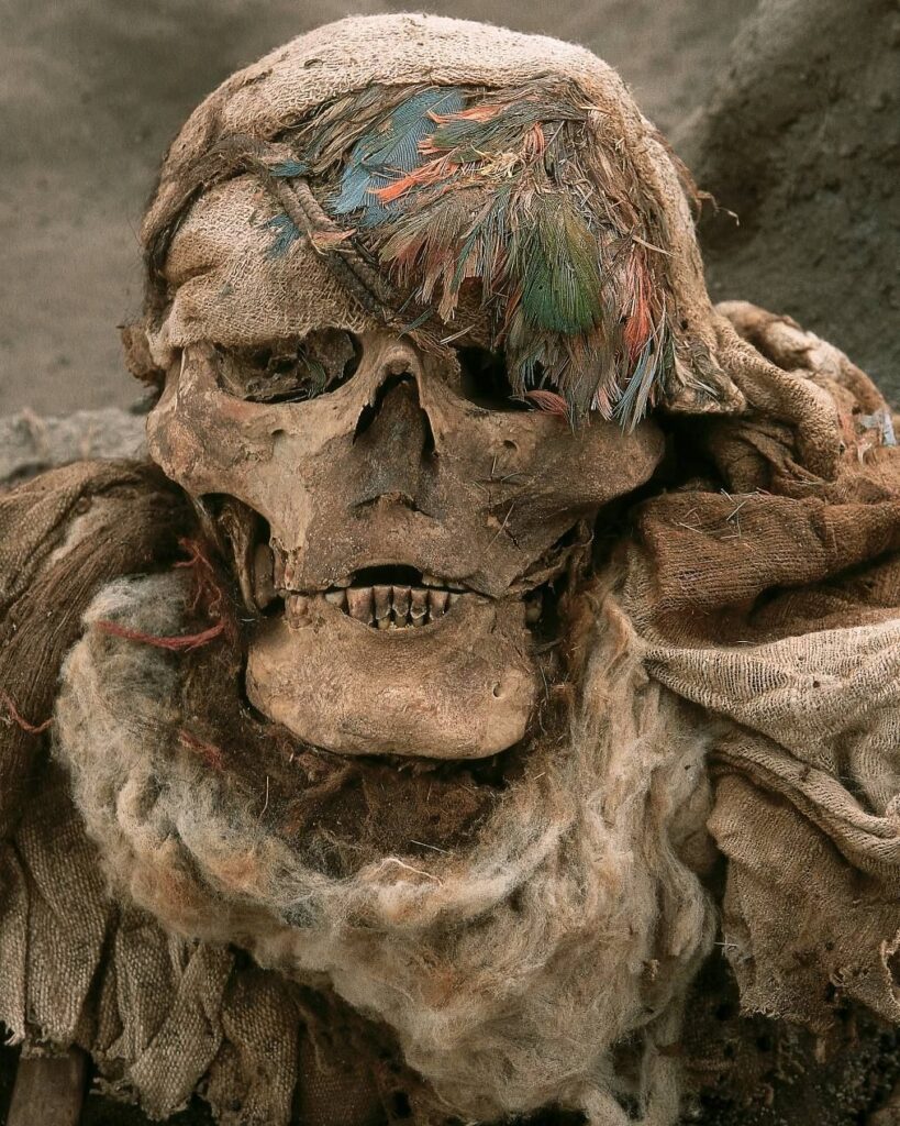 500-Year-Old Mummy of an Incan man wearing a feather headdress found near Lima, Peru