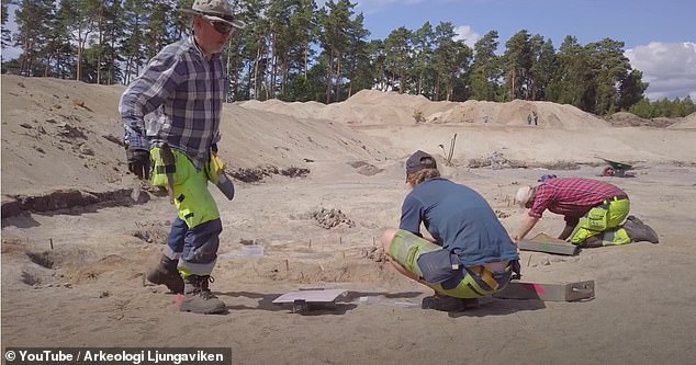 Museum project manager Carl Persson said ‘a sudden and violent increase of the sea level’ flooded the area with mud that had helped preserve the burial site. An ongoing archaeological excavation has involved removing layers of sand and mud.