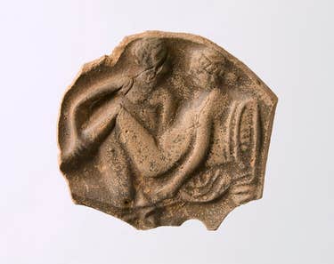 The villa with the recovered mosaics was built hundreds of years later around a courtyard in classic Roman peristyle arrangement. Among the loveliest of its mosaics is one depicting a sleeping Dionysus and Ariadne – a daughter of King Minos, who according to legend, would become the god’s wife.