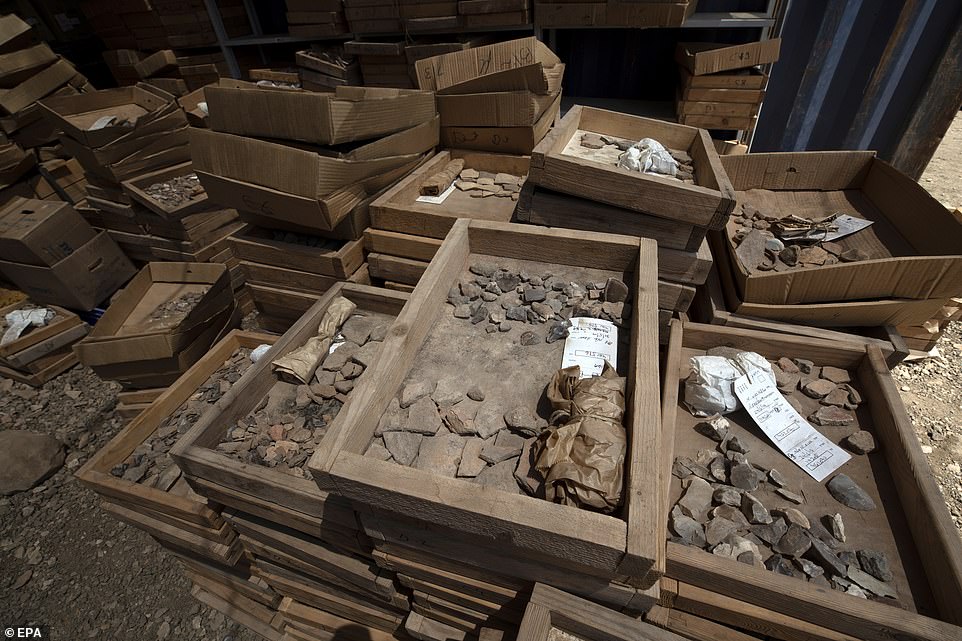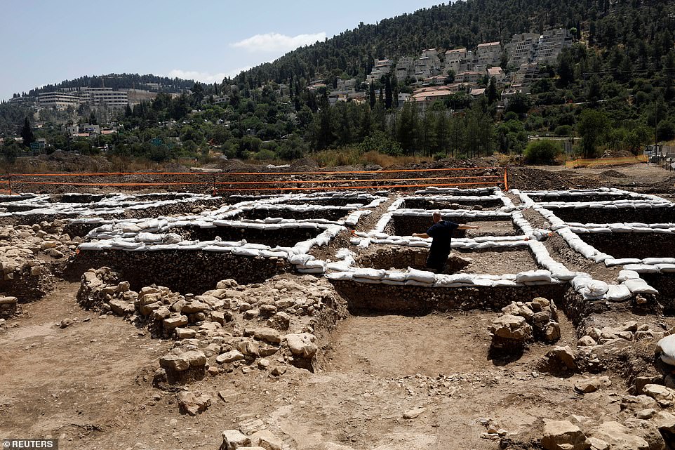 ‘This is most probably the largest excavation of this time period in the Middle East, which will allow the research to advance leaps and bounds ahead of where we are today, just by the amount of material that we are able to save and preserve from this site,’ Lauren Davis, an archaeologist with Israel’s antiquities authority, told Reuters.