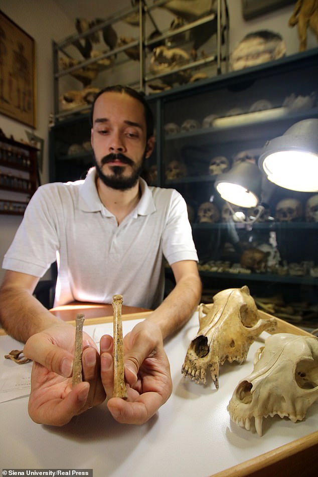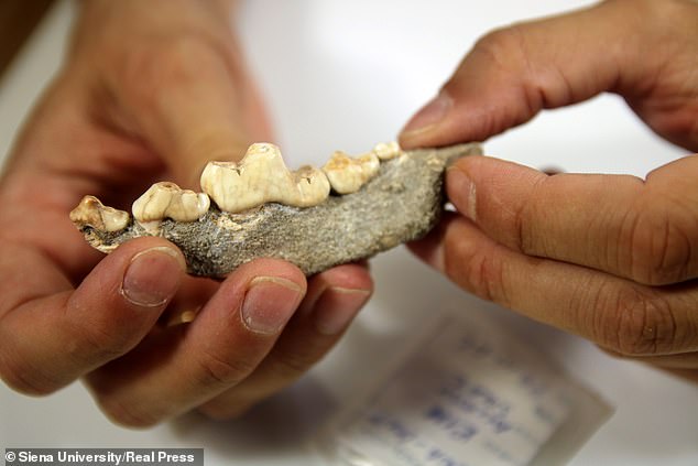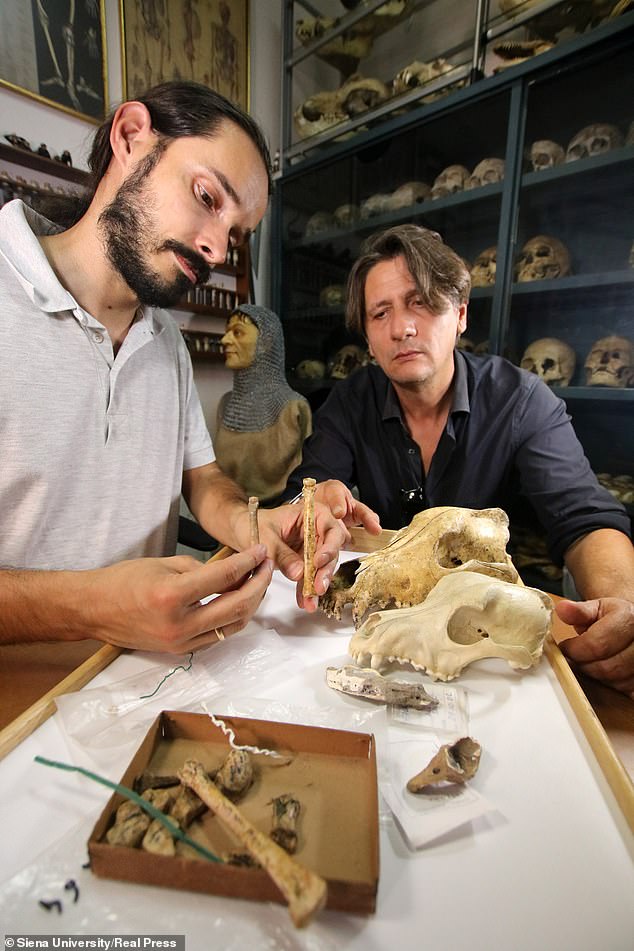 ‘In this period of serious crisis, the wolf, a social predator in some way similar to man, found a new way to ensure survival: taking advantage of a new niche, eating the leftovers from human settlements,’ Dr. Boschin explained. He also believes it is possible humans tried to accelerate the divergence from wolf to dog by killing the most aggressive offspring, encouraging calm and obedient genes to be passed down the generations.