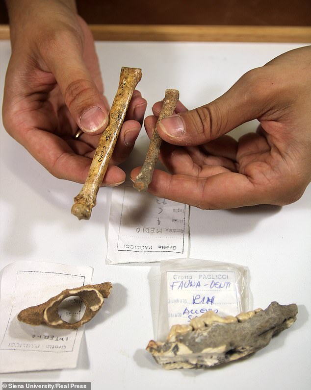 Writing in this study, the scientists say: ‘Our combined molecular and morphological analyses of fossil canid remain from the sites of Grotta Paglicci and Grotta Romanelli, in southern Italy, attest of the presence of dogs at least 14,000 calibrated years before present.