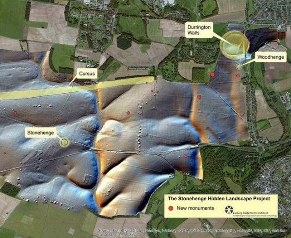 The site is 15 times the size of Stonehenge. The Stonehenge Hidden Landscapes Project team – a group of British archaeologists – used multi-sensor technologies to reveal evidence for a row of about 90 standing stones hidden beneath the bank of what is now called Durrington Walls, a super-henge in Britain.