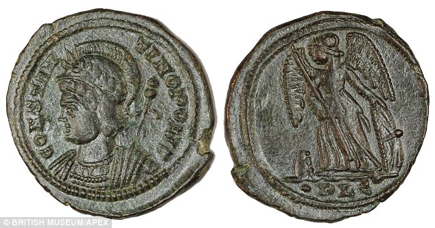 The special coin, called a nummus, was struck by Constantine the Great to celebrate the inauguration of the new city of Constantinople, now Istanbul.