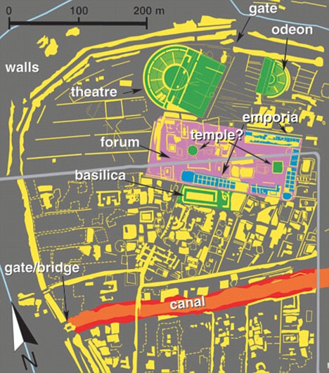 The map has enabled the researchers from the University of Padua in Italy to plot out the city walls, the street network, dwellings, theatres, rivers and canals