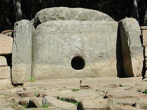 The dolmens have a limited variety in their architecture. The floor plans are square, trapezoidal, rectangular, and round. All of the dolmens are punctuated with a portal in the center of the facade. While round portholes are the most common, square ones are also found. In front of the facade is a court that usually splays out, creating an area where rituals possibly took place.
