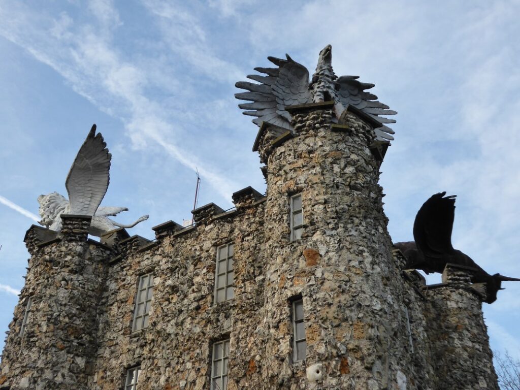 The Tower of Eben-Ezer is a 33-meter high tower built single-handedly out of flint by a man who worked on it for over ten years to display his artistic, paleontological, and theological discoveries.