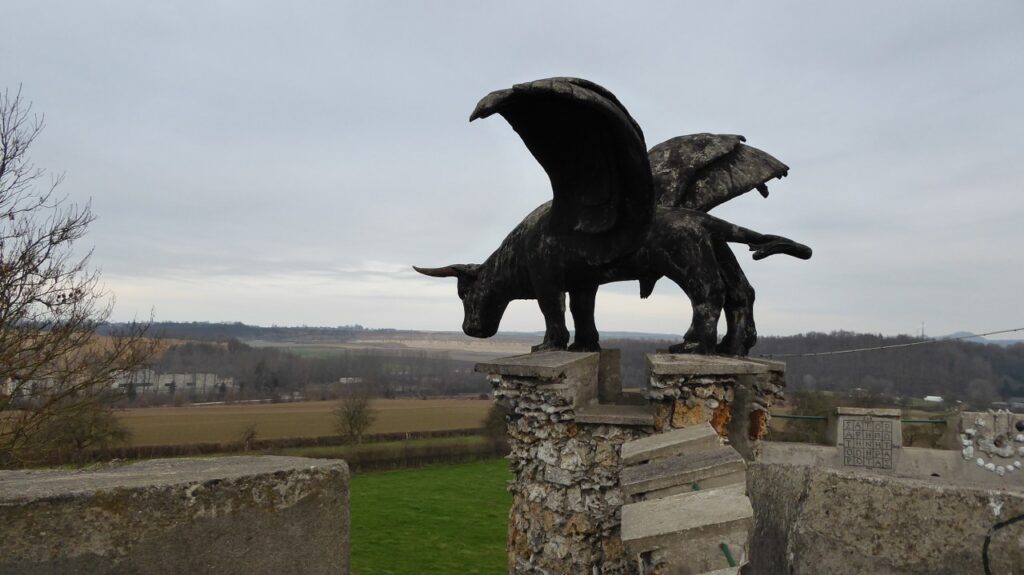 Robert Garcet (1912-2001), who was born in Mons, Belgium. When he was 18 he moved to this area north of Liège, where he worked as a labourer in the local quarry. He was very interested in geology, nature, the history of mankind and the Bible, wrote a lot of books, and developed his own vision of the creation of man.