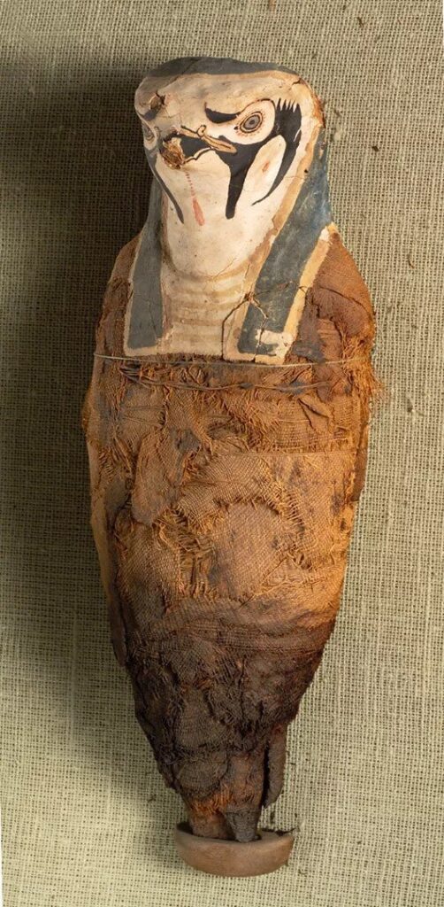 The other mummy, a roughly 10-inch-long (25 cm) bird-shaped mummy, represented the god Horus. According to Egypt mythology, Horus was the falcon-headed son of Osiris and Isis; a deity associated with the sky and pharaohs.
