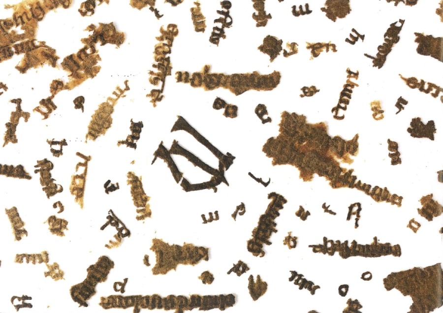 Remarkably, among the damaged pages were some that had let go of the words: kept together merely by ink, the words were floating around by themselves – like some sort of medieval Scrabble (pic 4). It’s the most remarkable bookish survival story I know.