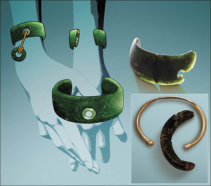 At an exhibition in France this year the green-hued chlorite bracelet, unearthed in a Siberian cave, was listed as 50,000 years old. It was earlier reported as originating from 40,000 years ago and made for an ancient woman by a Paleolithic craftsman.