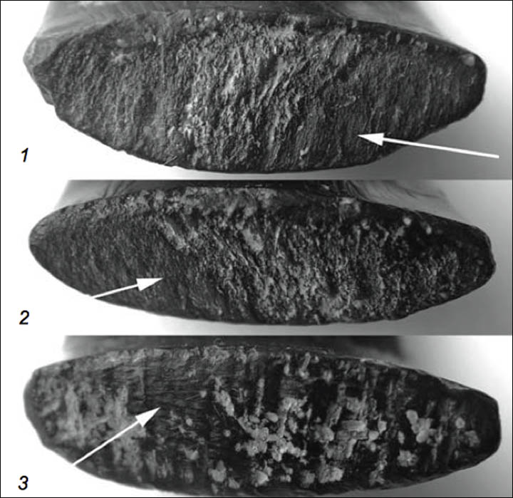 ‘Near one of the cracks was a drilled hole with a diameter of about 0.8 cm. Studying them, scientists found out that the speed of rotation of the drill was rather high, fluctuations minimal, and that was there was applied to drill with an implement, technology that is common for more recent times. The ancient master was skilled in techniques previously considered not characteristic for the Palaeolithic era, such as drilling with an implement, boring tool type rasp, grinding, and polishing with a leather and skins of varying degrees of tanning.