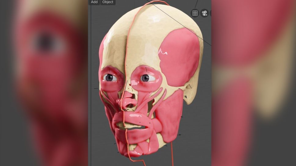 Facial muscles and ligaments were modelled digitally on KV 55’s skull.