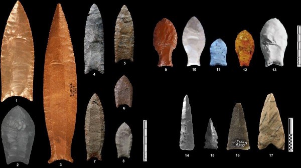 The fluted stone points found in the Americas are characterized by markings along with the spear points’ bases and blades. But the ones found in Arabia have fluted markings closer to the tips of the stone points.